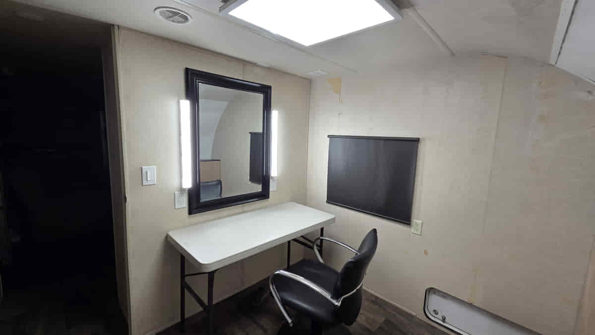 This camper trailer adds convenience and versatility to your production, whether you're shooting on location or need a private space for your cast and crew. Contact us to reserve this amenity for your next project.